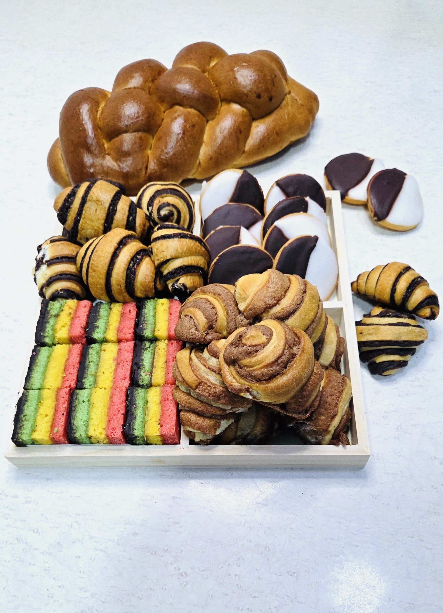 ✔ Fresh Challah Bread (optional add-on) – soft, golden, and braided to perfection for the full bakery experience.